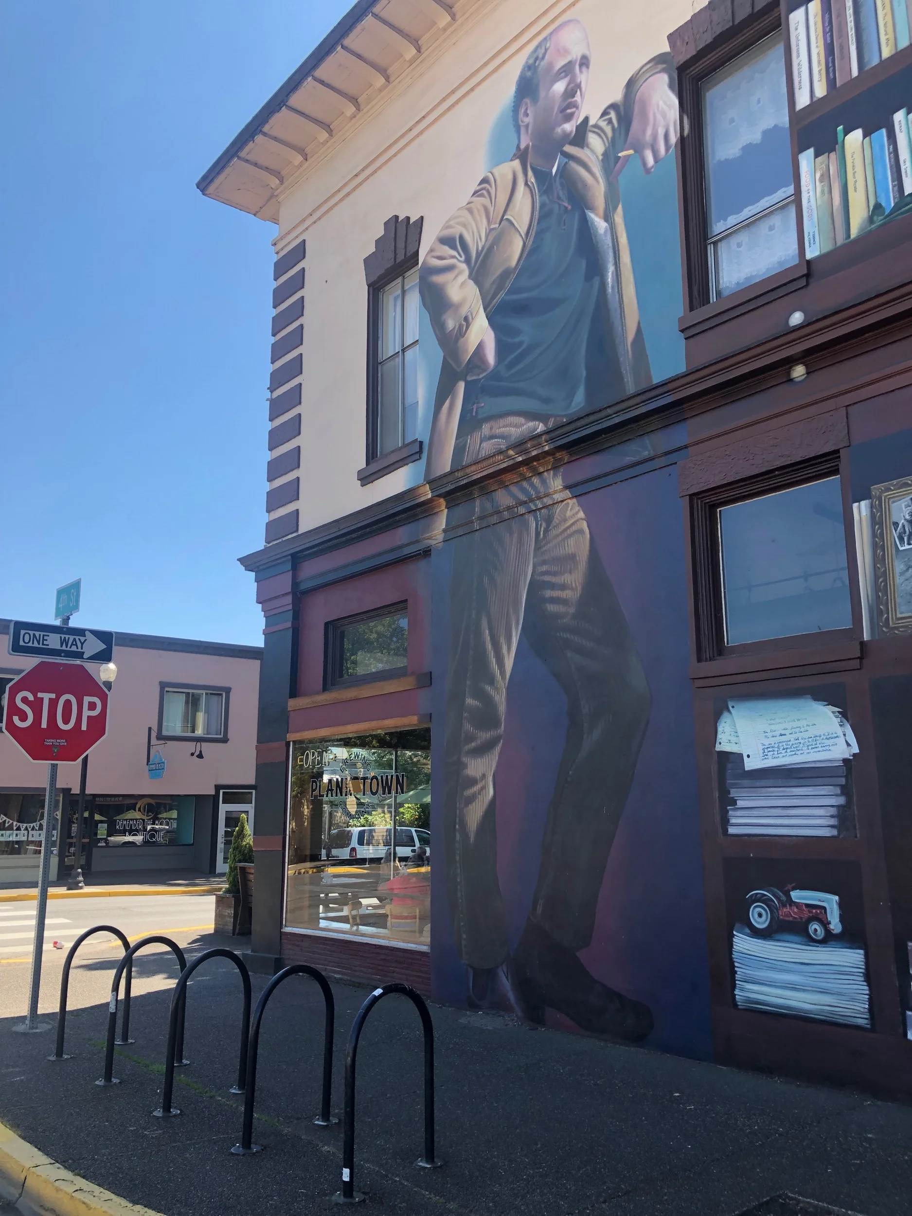 This two story Ken Kesey is at 4th and Main, Springfield, Oregon. Ken has been a literary icon, and leader of the Willamette Valley for half a century.; we are all proud him.