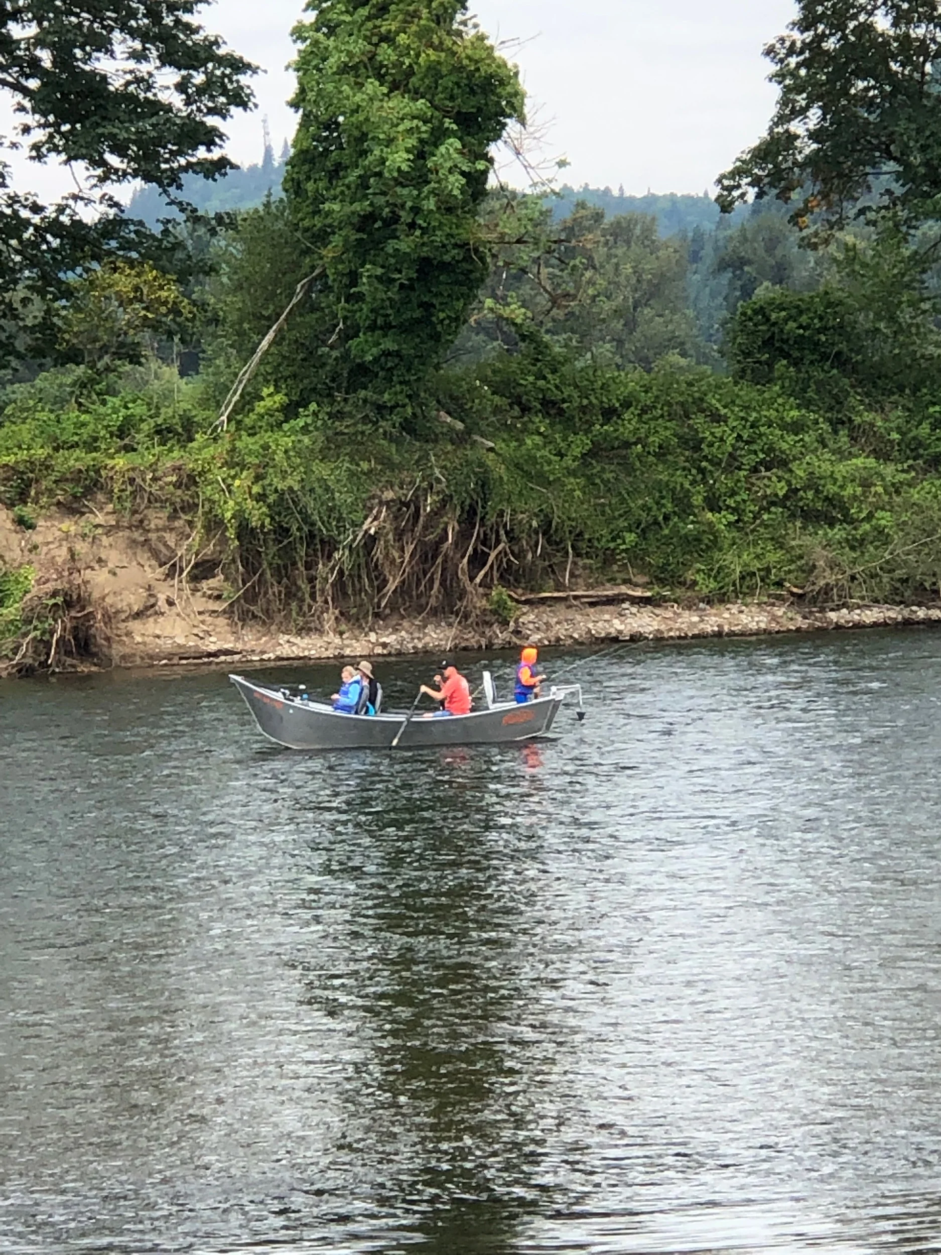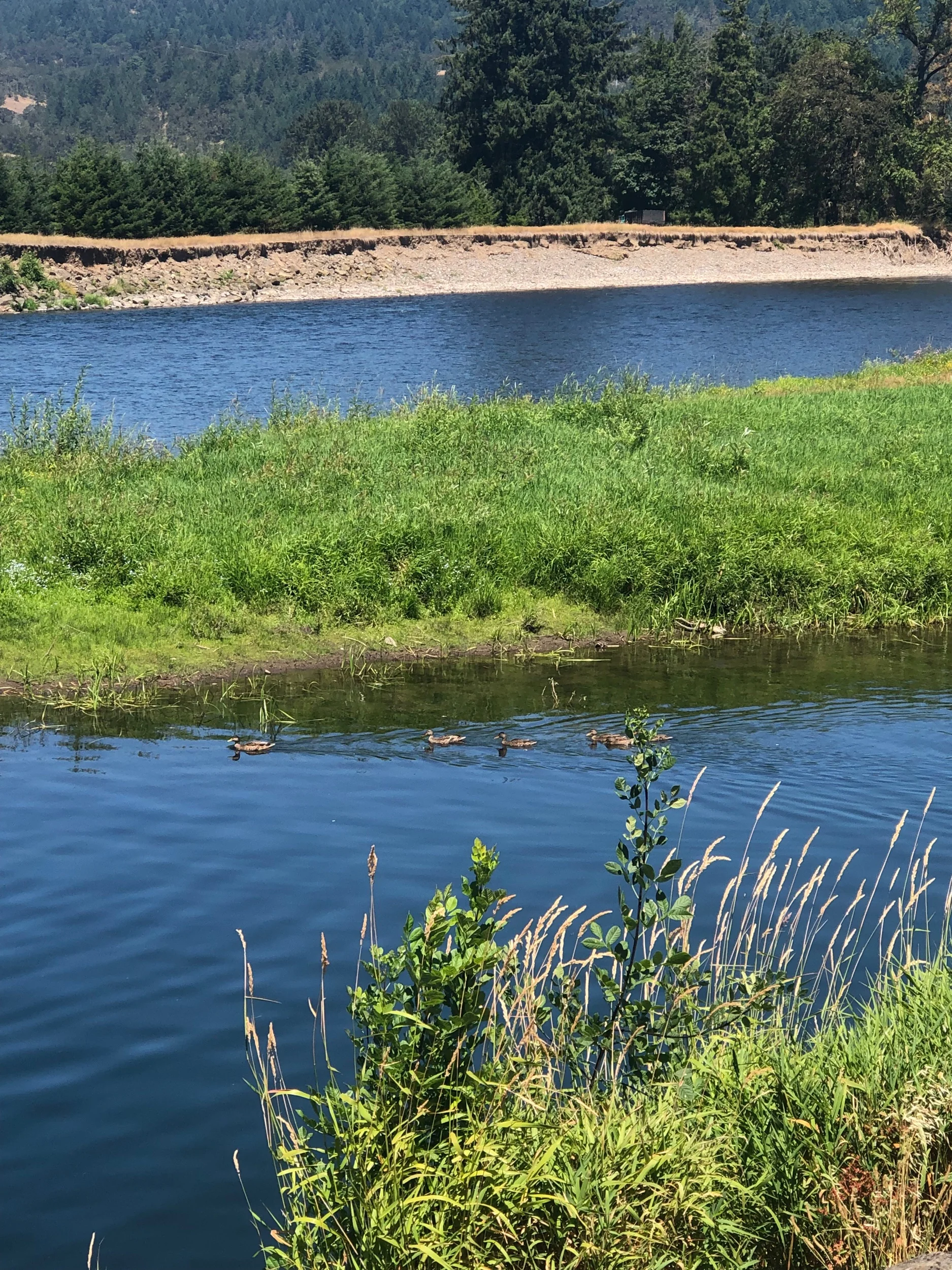 *Batpattiswae, USAO feels a cool dawn by the water.☮️The photo is mallards on the McKenzie River; the group mostly this year’s ducklings(and mom).