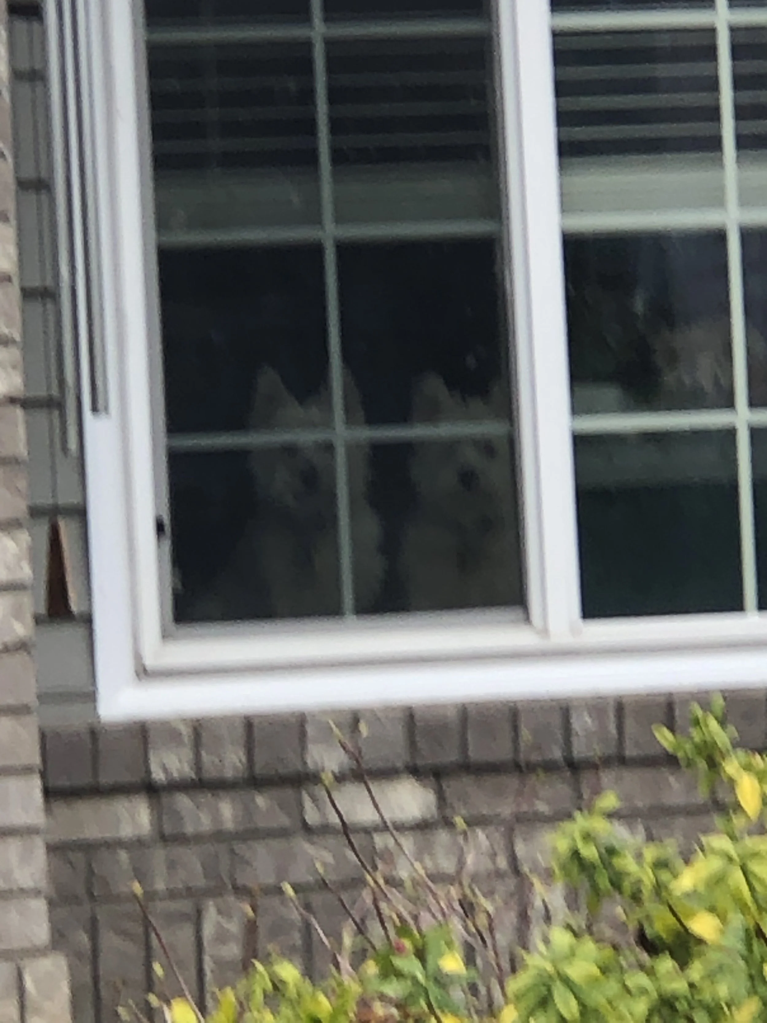 photo has two adorable Westie terriers house bound for the moment 💕be safe
